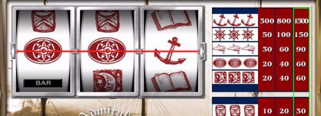 This is as basic as a slot game is going to get. You usually have a wild in these kinds of games, even without the presence of a scatter or a bonus level. But here you don’t even get that. You do however get a wide range of pirating symbols including barrels, books, wheels and anchors. Oh, and by the way, the anchor is pretty special because three of them can unlock the biggest prize of the lot. This would be a 300-coin prize if you bet one coin, and an 800-coin prize for a two-coin bet. If you did strike it lucky while playing three coins, your reward would be in the shape of 1,500 coins – the game’s top prize.Does Admirals Inn pack a bonus level as well?